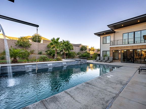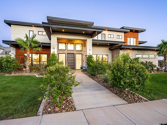 LEASE PURCHASE OPTION AVAILABLE A modern family retreat designed for entertaining, connection, and lifelong memories. This masterpiece sits on over half an acre in one of Southern Utah's most sought after neighborhoods. Designed for gathering and built for comfort, the home features six spacious en-suite bedrooms, a private office, a piano/music room, and multiple living spaces for work, wellness, and entertaining. Natural light pours into the open-concept living area and chef's kitchen, creating an inciting space to host family and friends. The home includes a theatre room, large home gym, and thoughtful details throughout. Step outside to your private resort: a sparkling saltwater pool and hot tub, climbing wall, rope swing and palm lined yard-all perfectly shaded into the evening thanks to the unique roof design. The oversized covered deck is ideal for sunset dinners. The RV garage is deep enough to keep your boat hitched to the truck with the tower up. Plus, there is plenty of space for tools, toys, or a home workshop. Fresh paint and new carpet make this home truly move-in ready-whether you are looking for a full time residence or a dream second home to make memories for years to come. Owner/Agent. Easy to show.