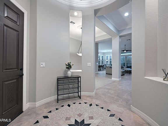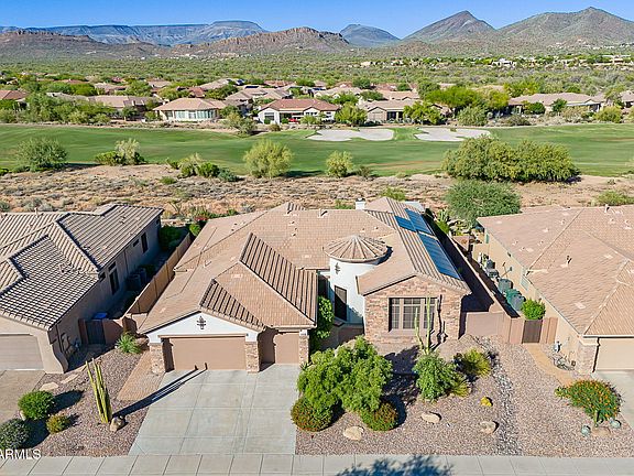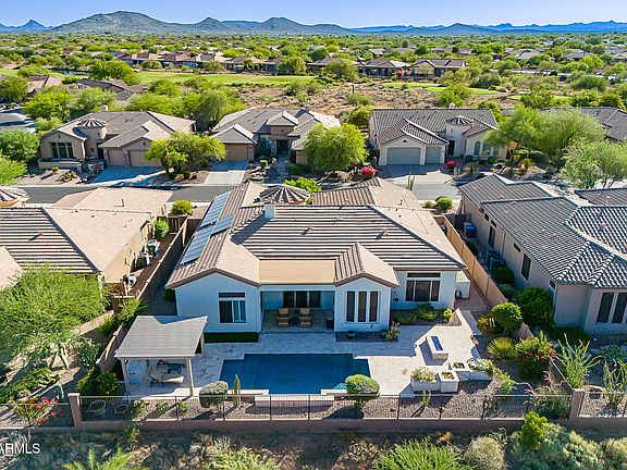 Gorgeous Golf Course property in Anthem Country Club with Private Pool and Gorgeous Golf and Mountain Views. Sensational newly remodeled interior with 12 foot soaring ceilings and owned solar! $116k worth of renovations in the last year. New Custom Kitchen Cabinets (much deeper) and lower drawers! New Kitchen cooktop. New Primary Suite Custom Closets, Door, and Primary Bath Shower. New Shutters and Fans. New HVAC & Garage mini-split. New Garage Epoxy & Cabinets. New Tankless Water Heater. New synthetic grass in the backyard. You will absolutely love this layout and so will your friends and family.