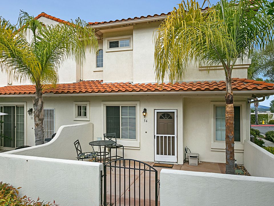 SPOTLESS secluded end unit with views of the San Luis Rey Mission. Feels like a SF home. Open floor plan includes LR-DR combo w/built-in media niche. Spacious kitchen w/tile floors, eating area, pantry, loads of cabinets, beautiful silestone counters w/designer tile back splash, SS sink & brand new range and microwave. Jack & Jill bedrooms & upstairs laundry closet includes newer W&D. Features brand new paint throughout, new carpet, window blinds and kitchen and bath faucets. The AC, furnace, energy efficient water heater, soft water system and reverse osmosis are less than 2 years old. Garage has professionally installed epoxy floor and newer insulated garage door. Courtyard faces open space. Close to street parking, freeway & schools. Must see!