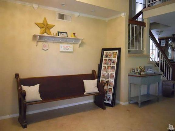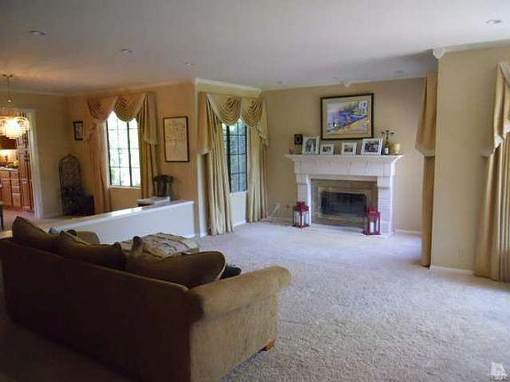 Beautiful Buttercreek home. Features include front door with oval leaded glass; tile floors accented with granite keys in entry, upgraded eat-in kitchen with hickory wood/honey finish cabinets w/pull-outs; stone counters, KitchenAid dishwasher + double ovens, Thermador 5-star-burner cook top; built-in hutch w/glass fronts, task lights, tile floors; crown molding & upgraded baseboards; custom designed living room fireplace in marble; custom window coverings; master bath, shower, tub surround & floors all in travertine; large oval tub with 6 jets with inline heater. Picturesque designer backyard with detached patio, separate pergola w/swing, dry river rock creek w/bridge, fountain, flagstone stepping stone. Located on a cul-de-sac street.