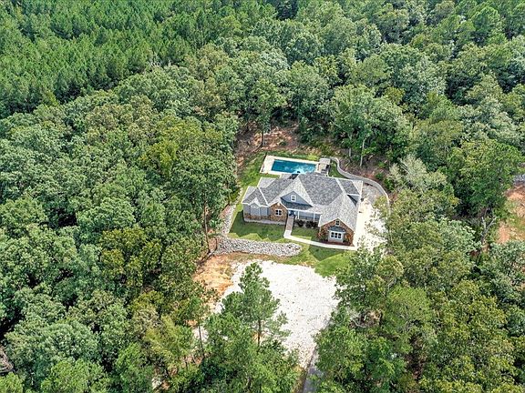 This astonishing custom built home is a must see! Located on a 5.95 acre wooded lot, this home boasts multiple luxuries to include handmade maple cabinets, quartz counter tops, top of the line Whirlpool kitchen, oversized pantry, an inground Gunite saltwater pool (solar heated), three car garage, privacy upon privacy, High Speed Internet, and so much more. Enjoy the wood-like ceramic tile in the common areas, spacious office/computer room with beautifully stained coffered ceiling, laundry room with sink and plenty of counter space. Features two covered patios, with one completely screened. Gorgeous owner's suite with barn doors leading to the master bath. Enjoy an oversized marble/tiled shower and split double vanities. Save with 7.5kwh solar panels (paid off), spray foam insulation, and tankless water heater.