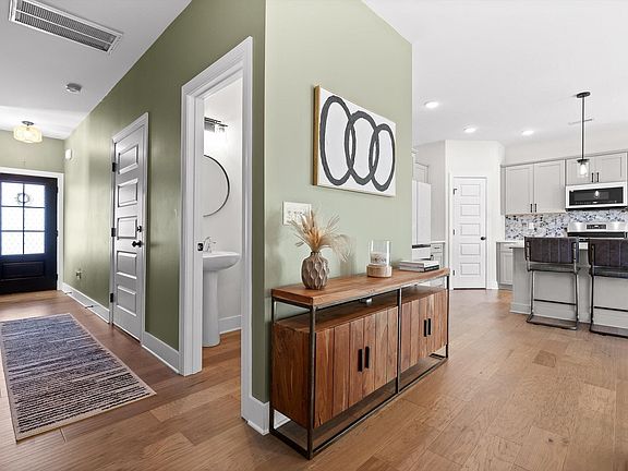 Welcome to 4062 Inlet Loop, a 3 bed, 2.5 bath home built in 2022 in the Moss Landing community. This well-maintained home offers modern comfort, thoughtful upgrades, a layout designed for everyday living and entertaining. Neighborhood amenities include a pool, clubhouse, playground, sidewalks with street lights, and wooded trails. Upon entry, you'll find a cozy foyer nook to your right and a door that leads down to the partially finished walkout basement. A welcoming hallway leads to a conveniently placed half bath before opening into a bright, open-concept kitchen, dining, and living space.The kitchen features a large island that houses a farmhouse sink and dishwasher, with counter-height bar seating, plus a pantry and additional storage closet. Natural light fills the space, with warm hardwoods and light walls creating an airy feel. Step outside to the covered back deck to take in the wildlife and tranquil woods that is never to be developed.