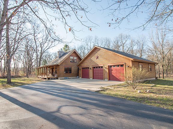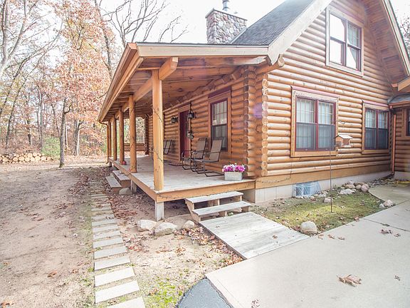 Nestled away in the serene calmness of ten acres of greenery and surrounding state land, this 2 bedroom log cabin is the perfect next home. Copious amounts of sunlight all around the house makes it feel welcoming. A fireplace for the cozy winters and a backyard for summer night bonfires. Perfect for the artist looking for inspiration or the avid hunter needing the perfect spot to hide. Plenty of storage space in the basement that can also be used as a family room. You will have plenty of room for your vehicles in the three car garage.