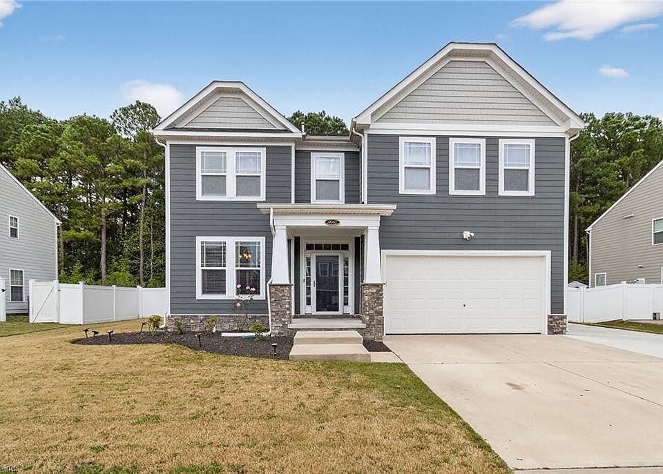 Located in a luxury community in Suffolk, VA, this beautifully maintained home was built in 2018 by Chesapeake Homes and offers the perfect blend of elegance, comfort, and convenience. Tucked along the edge of peaceful woods, it welcomes you with warmth and charm from the moment you arrive.Inside, you’ll find 4 spacious bedrooms and 3 full baths, thoughtfully designed for both everyday living and entertaining. Zoned heating and air conditioning provide year-round comfort, while the manicured yard and gutter guards make maintenance a breeze. Enjoy the serene lifestyle this neighborhood offers, complete with a community park and scenic walking trails just a short stroll away. This home isn’t just move-in ready—it’s ready for your next chapter.