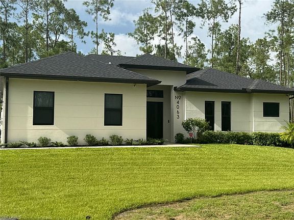Experience Sophisticated Living, Embraced by Nature’s Beauty. Beautiful 3-bedroom + den/office, 2.5 bath home on 2.5 fully fenced acres (small wet area in the front of the lot the rest is completely upland; see DEP wetland picture) in Golden Gates estates, offers stunning wooded views from every angle with a bright open layout. Features include impact doors/windows, osmosis water system, full camera wiring, updated kitchen hood, electric blackout shades throughout, and two electric fireplaces (one with a concrete marble mix mantle). Upscale finishes such as elegant moldings and designer lighting bring warmth and sophistication. Enjoy the fully panoramic screened-in lanai, 2-car garage, and a private road leading to the back of the property, perfect for RVs, boats, work trucks, and more.