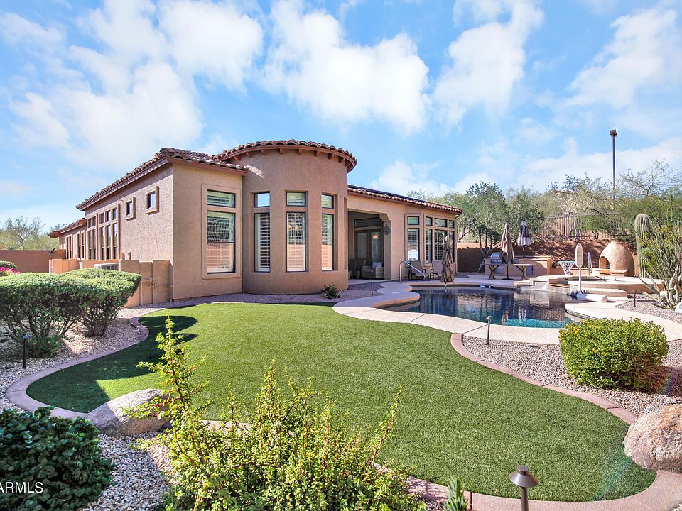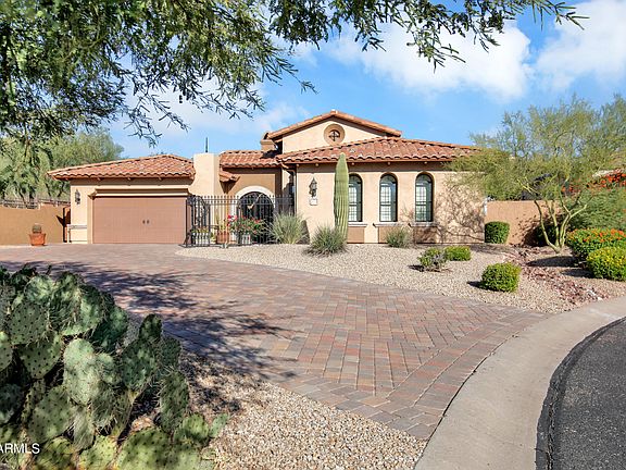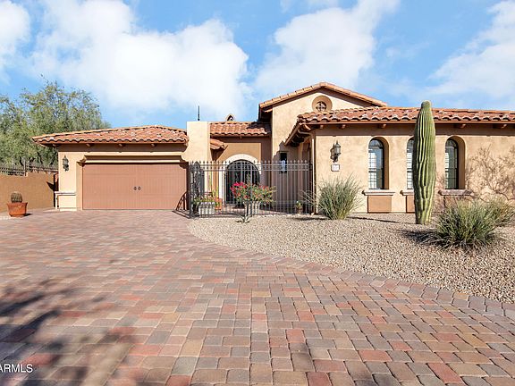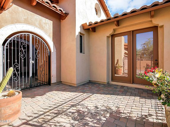 FABULOUS Las Sendas home with a very flexible floorplan you can use to suit your lifestyle. Currently used as a 4thd bdrm, the large den has doors & sitting area / closet niche. Guest casita w/private entrance would also make a great office or teen room! Great cul de sac location-huge paver driveway for guest parking! High quality Blanford Home. Kitchen includes 6 burner gas cooktop,huge island & large windows overlooking the relaxing backyard! 12ft ceilings, shutters throughout,huge master suite w/exit to backyard. The backyard is ready for you to relax or party! Heated pool, spa, built in bbq, adobe style fireplace and loads of privacy with a natural desert wash area behind you. Low maint synthetic grass.OWNED solar panels. SEE DOCS TAB for more info.