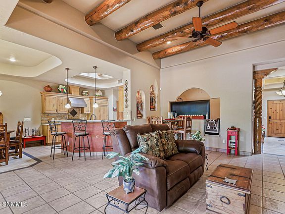 Luxury & Comfort in Sonoma Ranch. This gorgeous 3-bedroom home, plus office/game room, features a thoughtfully designed split floor plan. The living room boasts soaring ceilings with viga accents, a kiva-style fireplace, and abundant natural light. A striking Venetian plaster accent wall highlights the foyer, setting the tone for the home's stunning detail.The gourmet kitchen is a chef's dream, complete with custom wood cabinetry, a handy center island, granite countertops, and a commercial-grade range. A unique treyed skylight with viga accents adds warmth and architectural charm.The spacious primary suite offers laminate plank flooring, a patio door leading to the expansive covered patio, and plenty of room to unwind. Perfect for entertaining, the backyard features a low-maintenance design and ample space for gatherings.Located in the desirable Sedona Hills subdivision, this home offers convenience with close proximity to shopping, dining, and quick highway access.