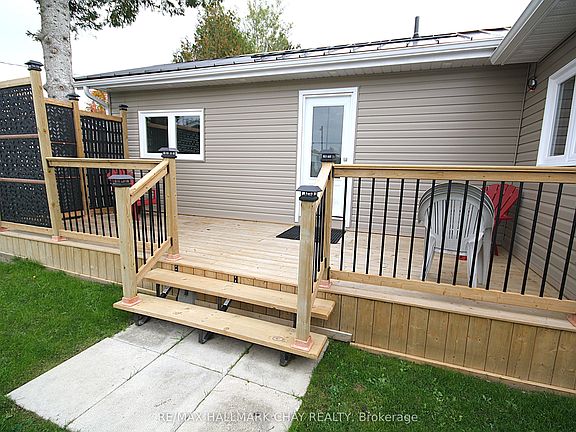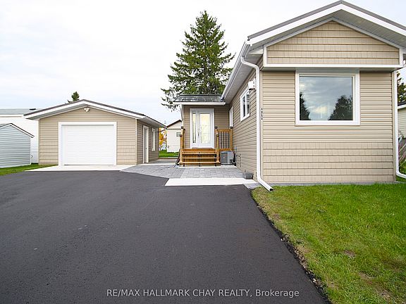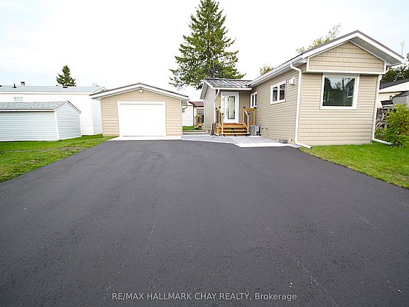 WOW! NEW, NEW, & MORE NEW! Completely renovated or rebuilt inside and out. This move in ready home has been recreated just for you to enjoy for many years to come. Too many upgrades to list...Featuring All new in 2024/25; steel roofs on all 3 buildings, siding, soffit, fascia, troughs, exterior lighting, huge new asphalt driveway, paver stone, all new windows, and exterior doors, new decks, upgraded insulation, drywall, flooring, totally new bathroom, 5 brand new appliances, new kitchen, new central air unit, all flooring, all interior trim, doors, and paint, lighting, and much much more! Walk out to large private deck. Pride of ownership and attention to details abound. Garage was taken down to foundation and rebuilt with new framing, insulated walls and doors, windows, garage door opener, and hydro. Amazing opportunity. Located close to Orillia and major amenities. Land lease fee includes taxes, water, road maintenance, garbage removal.