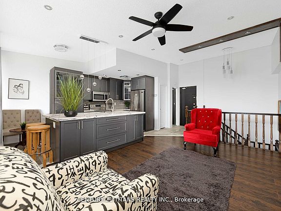 Welcome to Hyland, where comfort meets convenience in this beautifully upgraded 2-level townhouse condo featuring 2 spacious bedrooms, 2 washrooms, an open-concept living area, 1 parking space, and 1 locker ideal for families, first-time buyers, or professionals. Accessible from both the 5th and 4th floors, this move-in-ready home boasts modern upgrades including stainless steel appliances, updated windows and patio doors, laminate flooring, updated baseboards, in-unit laundry, and standout features like elegant oak stairs and an oversized island countertop perfect for entertaining. With maintenance fees covering internet, cable TV, heat, water, building insurance, common elements, parking and locker, this unit offers exceptional value in a well-managed building. Don't miss your chance to own this stylish, functional home, book your private viewing today!