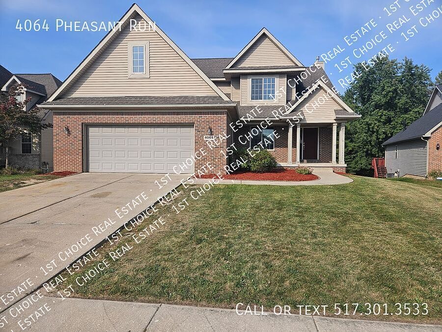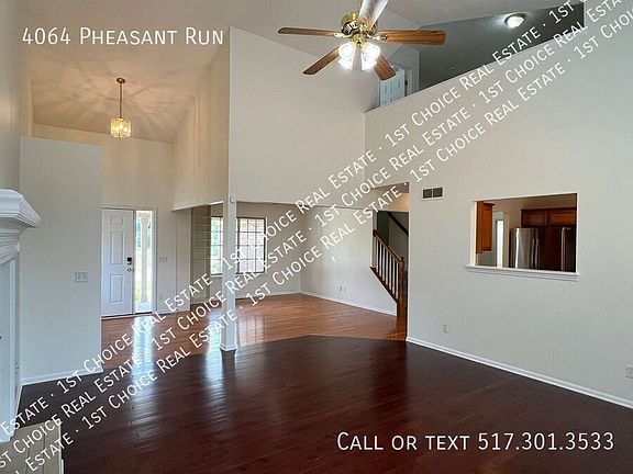 Welcome to 4064 Pheasant Run. This property is located in the Hunters Glen subdivision in Holt. This home has 3 bedrooms, 2.5 bathrooms and nearly 2,300 sq ft of living space. The first floor features an entry way into a formal dining room, living room, kitchen, breakfast nook, half bath, mudroom with laundry area and a first floor master suite with en-suite bathroom. There are hardwood floors in the formal dining area, living room & kitchen. The 2-story living room has large windows providing an abundance of natural light and a gas fireplace. The breakfast nook off of the kitchen has a sliding glass door that leads out to the large back deck. The first floor master suite has multiple closets and a master en-suite bath with jacuzzi tub, separate shower and double sink vanities. Upstairs you will find a loft area, the second full bathroom and two additional bedrooms. The walk-out basement is unfinished. Other amenities include central air and an attached 2-car garage. This property is pet friendly (limit 2). Cats & small dogs (https 1stchoicerealestate. 2 Car Attached Garage Back Deck Breakfast Nook Central Air Gas Fireplace Loft Area Unfinished Walk Out Basement