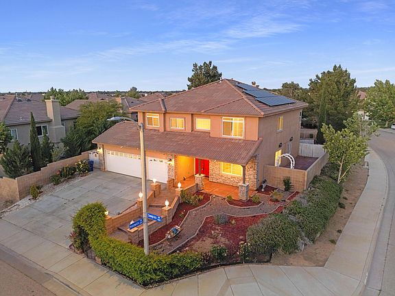Welcome home! This stunning Palmdale home is situated right across the street from the beautiful Rancho Vista Golf Course. With over 3,200sf of living space and a nearly 8,400sf lot size, you'll have plenty of room to spread out and relax with your friends and family. This home boasts 6 bedrooms, 3 full baths, FULLY PAID-OFF SOLAR, a 3 car garage, and 2 fireplaces. You will enjoy the large balcony overlooking the backyard gazebo and the sitting area with a fire pit during all your outdoor gatherings! With one downstairs bathroom and bedroom with its own separate entrance, this could be the perfect setup for a mother-in-law suite or office. This spacious, newly updated home also features a nearly 600sf master bedroom with two separate his and hers walk-in closets, as well as a gas fireplace as the centerpiece of the room. With stunning views and paid-off solar, this is the perfect home for you and your family!