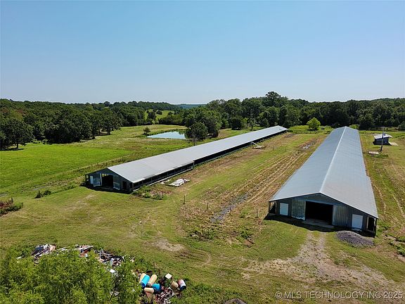 Come view this gorgeous fertile Oklahoma farmland with a small living quarter. That has a small house livable and has been maintained very well. Home features are a small kitchen, 1 full bathroom, hot water tank, 4 space heaters, and 2 bedrooms. Utility features are city water, holding tank for sewage, electricity for all heating. Owner also built a small unfinished house wood frame, roof, and siding already installed. Also has 2 large sheds can be used for storage. The shed by the front gate has a well that has been dug only. Pictures does not do the property justice. Ideal green pastureland that would be perfect for cattle, farming or haybales. The pastureland is gated and separated majority of the lot is fenced but not all. The lot also has access to one large pond & partial access to another large pond. Property also includes 2 chicken broiler houses never used by owner. One of the chicken houses was thoroughly cleaned and part of it was converted into a partially finished indoor grow for any vegetables or plants. Some electricity & HVAC installed in this part of the chicken house. Where the chicken houses are located there is a water well & 400-amp electric panel, previously used for the chicken houses. Property is centrally located as well right off Hwy 26, only a 4-minute drive to Mccurtain, only a 10-minute drive to downtown Keota, and only a 20-minute drive to Stigler. Property is occupied and gated must have an appointment to look at. Sold in as is condition only.