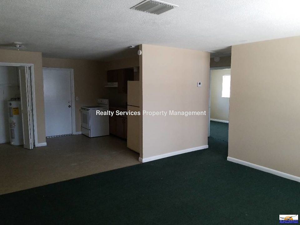 Freshly painted, tile and carpet with a private screened lanai. Room for a dining table in the kitchen. Washer hook up only - COOL central air