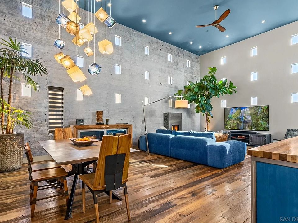 Experience modern industrial luxury in this beautifully remodeled Mission Hills loft-style townhouse. Step inside to 16' ceilings and a stunning great room, perfect for entertaining. Gorgeous reclaimed barn wood floors add warmth, while a custom Shamale Peleg chandelier draws the eye, creating an unforgettable ambiance. The chef's kitchen is a showstopper, featuring a unique, exotic hardwood island, sleek concrete countertops, and backlit open shelving—a dream space for cooking and gathering. The primary suite spans the entire third level, with 12' ceilings, custom Knotty Alder closets, plus canyon, and west-facing views. The en-suite bath is pure luxury, complete with a dual-head shower for the ultimate spa experience. Outside, the private 500 sf rooftop deck wows with 270° views, sunsets, and glimpses of the ocean. Enjoy an outdoor kitchen, fireplace, and Bromic Eclipse heater for cozy city nights. Rarely does a townhouse with such outdoor space come to market—a unique find in San Diego!