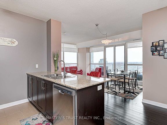 Bright And Spacious Corner Unit With Wrap Around Windows Showing Off The Beautiful South-West Exposure From The 28th Floor. Enjoy The View From Your Private 95 Sqft Balcony. The Unit Offers New California Closets Throughout, New Roller Shades, Upgraded Balcony Flooring By Condokandy, 9 Ft Ceilings, Granite Counter Top, Stainless Steel Appliances & Ensuite Laundry. **Cozy Broadloom In Both Bedrooms** Most Functional Layout