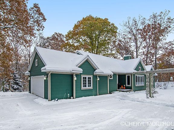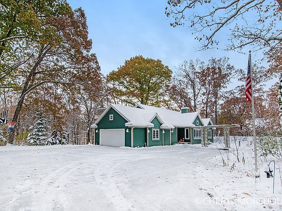 Welcome to Sandy Ridge Estates! Striking walkout ranch home that is meticulously maintained and updated throughout. Located in a beautiful neighborhood on a cul-de-sac street and offering just over 4 acres of wooded land. Built of 2x6 construction with an emphasis on detail throughout! The design elements of the home consist of birch cabinetry throughout the main level with oak in the lower level, built-ins of solid cherrywood adorn the great room fireplace along with a beautiful cherrywood mantle. Kitchen offers an abundance of cabinetry, pantry, built-in desk, quartz countertops, and attractive backsplash! Easy access to the large dining room which has natural light shining through the large windows offering a picturesque view of the property! Master Suite, 2nd Bedroom and 1 ½ Baths complete the main floor. Lower level has a wealth of living space with a large family room with Vermont Castings cast iron wood stove with a catalytic converter which reburns smoke (releases more heat into the home) game room, three bedrooms, full bath and a large laundry room. Enjoy the outdoors while relaxing on the 12x18 deck! Two stall garage with outbuildings allowed. Exterior is seamless metal galvinized siding! Michwave is running fiber optic lines for high speed internet in the development as of listing going live. Michwave Fiber speeds are 100 mbps to 1 Gbps and its unlimited. Located 25 minutes to downtown Grand Rapids, 15 miles to M6-US131 Interchange. For more details and a private tour please contact listing agent.
