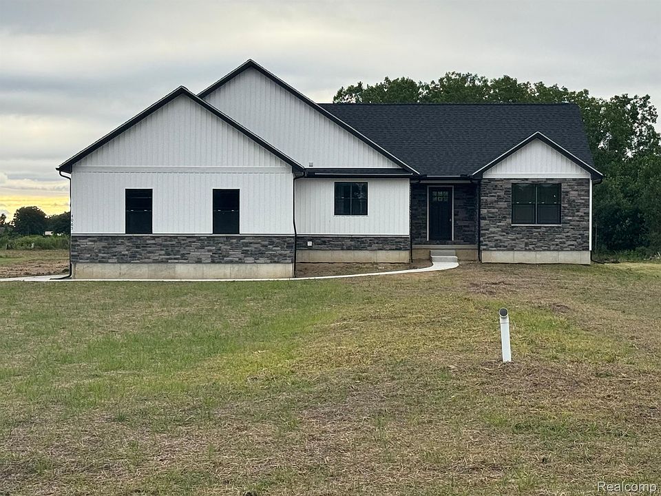 Ready to move in now! Just completed 6-28-24! Grass just planted 6-28-24. (2.25 Acres) Located 1/2 mile from M-53 Van Dyke transportation artery. This 3-bedroom, 2-1/2 bath ranch home is perfect for your growing family! This home features granite countertops, high speed cable, vinyl plank flooring located 1/4 mile from pavement, natural gas perfect for those working from home! Energy Star-certified Jeldwen brand windows, lifetime-warranty Kraftmaid cabinets color white, partial stone exterior craftsman style trim package. Vaulted ceiling in great room. 9 foot tall basement with basement plumbed for future full bath in basement.