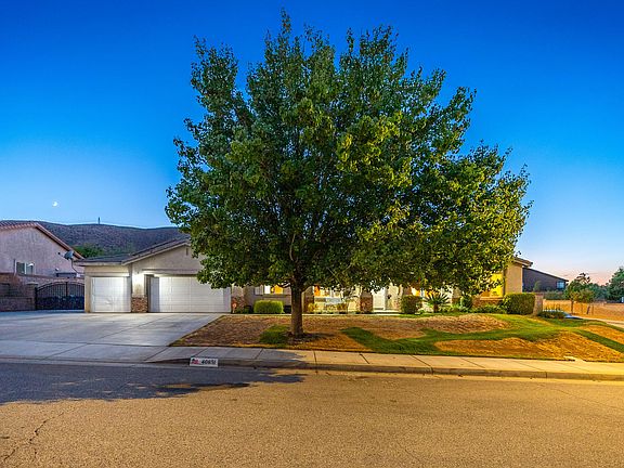 Located within the sought-after New West situated on the foothills of West Palmdale. This 5 bd + 2 1/2 bath single story home has solar, a 3 car garage and RV access. Inside boasts an open floor plan that includes formal living & dining rooms plus a family room with fireplace. Kitchen has a walk-in pantry and an island that opens into the family room. Bonus room that overlooks the living room is a great flex space that can be used as a home office, gym or...? Tile flooring throughout kitchen, bathrooms and traffic areas. Spacious primary bedroom has a walk-in closet. Ensuite bathroom features dual vanity, jetted tub and separate shower. Popular split floorplan with secondary bedrooms located on the opposite end of the home. Sprawling backyard features 2 large covered patios, blocks walls and a shed. Conveniently located near schools, shopping, dining and hiking trail. Don't miss this one!