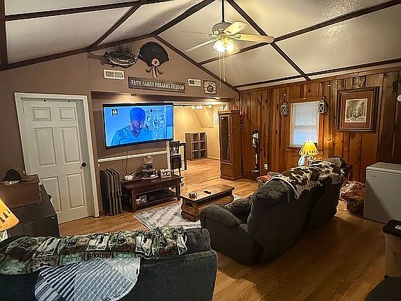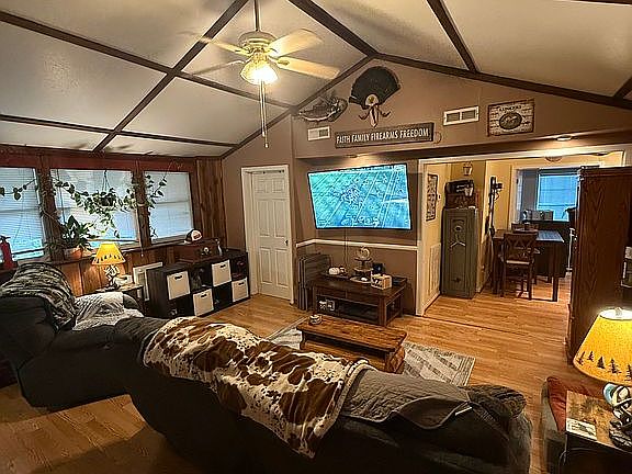 Large private yardOutdoor activitiesFenced area for dogsVaulted ceilingPartial basement