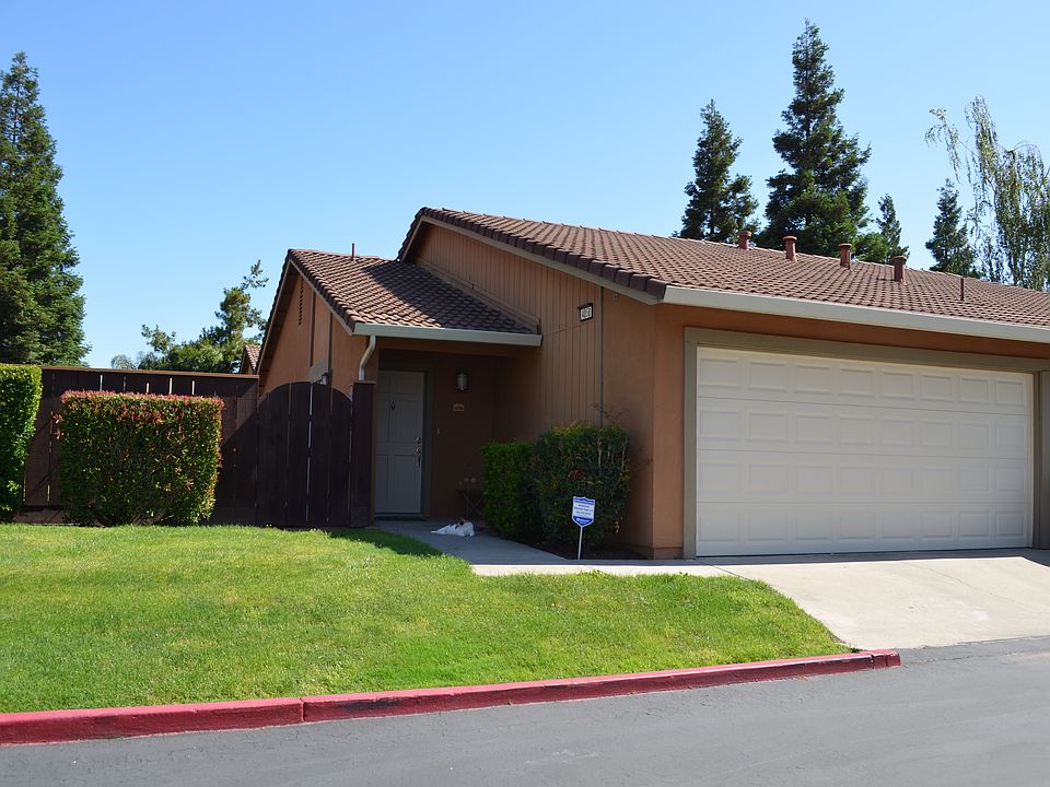 One story, 2-bedroom, 2 bath in northern Modesto, near the Standiford exit of the 99 and next to shopping centers and the Vintage Mall. This condo is in the quite tree lined "Parkside Villas" complex and it is located near the pool and spa. The condo has granite bathroom/kitchen countertops, and granite tub enclosure. It is fully equipped with stainless steel appliances including dishwasher, microwave, and stove / refrigerator. In the two car garage is a washer and dryer included. It has travertine tiled kitchen, dining area, bathrooms, and carpeted floors in the living room, hall way, and bedrooms. Central heat and A/C. Private patio area just outside living room sliding glass door. Provided is two car garage with guest parking available near the unit. The monthly rate is $1900. Water, sewage, HOA dues and trash are included. The images provided are representative. Some things may have changed since the photos were taken. The square footed size is approximate. The unit will be available for move in the 15th of July or there about. Security Deposit of $1000 and a one year is required. Required is a $1000 security deposit and a one year lease.