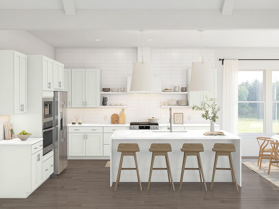 Roomy loftLuxurious primary suiteHome officeGe profile stainless-steel appliancesFrost white cabinetryMulti-slide doorLoft-inspired finishes