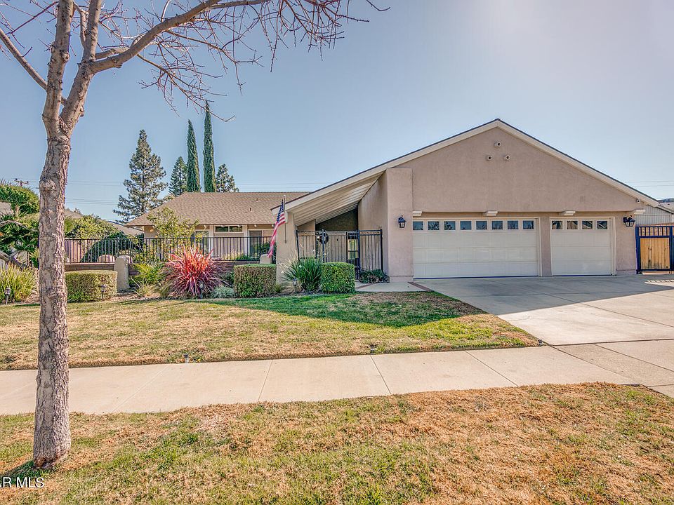 This gorgeous single story 3 bedroom, 2 1/2 bath Fountainwood has a 3 car garage and smaller RV access area. Full of upgrades and charm it is ready for you to move right in. Walk through the gated courtyard and in the front doors to an open living room with new dual pane sliding glass doors and separate sunken visiting area with a fireplace and wet bar. The kitchen features granite counter tops, double oven, small breakfast eating area and new dual pane windows wrap around the kitchen overlooking the side patio and back yard. Beautiful outdoor counter tops with pass through windows from the kitchen. There are windows galore! Once down the hallway you will find 2 spacious bedrooms with a Jack-n-Jill bathroom. The stunning master suite has walk-in closet and a newer remodeled master bath including makeup vanity, dual sinks, large shower and separate toilet area. The backyard includes a newer Tuff shed with plenty of extra storage space.