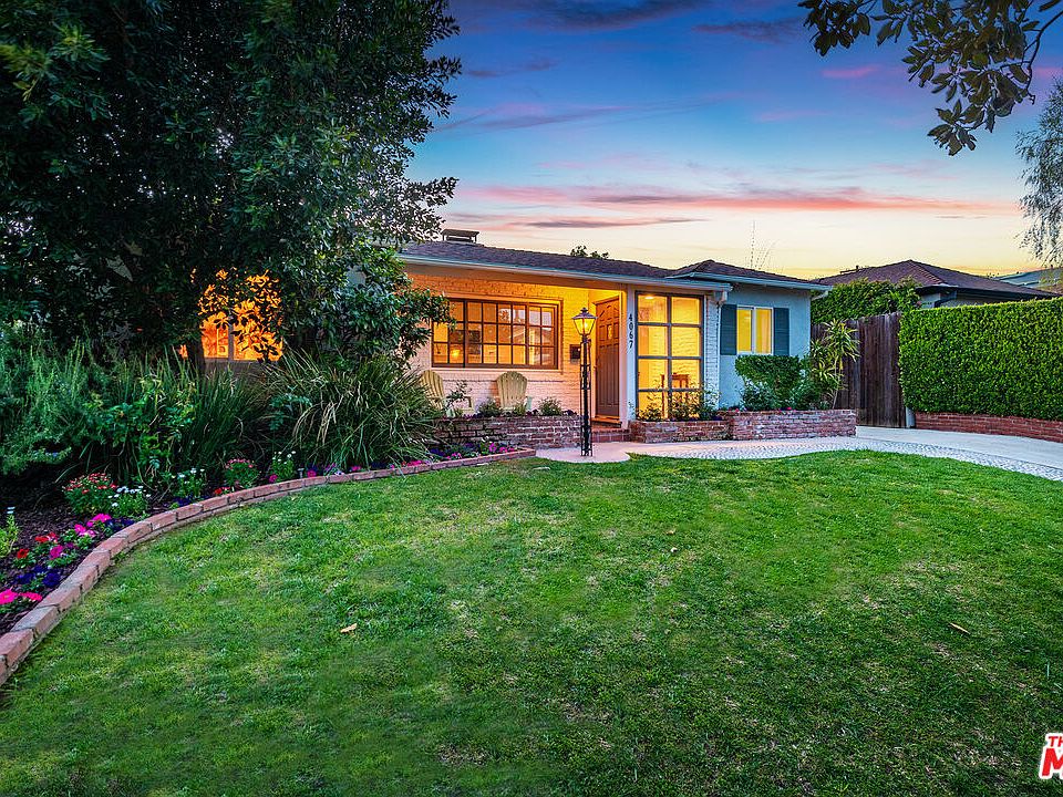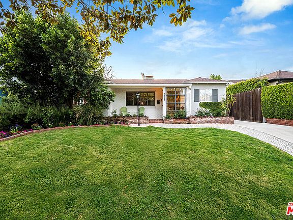 Step into this charming, light-filled traditional home nestled in the coveted enclave of Footbridge Square in prime Studio City! The inviting single-story residence features a formal living room, 3 bedrooms, 2 bathrooms, and a spacious family room looking out to delightful pool sized flat backyard. Beautiful hardwood & paver tile floors throughout, while the living room boasts original detailed coved ceilings and a cozy fireplace. A large formal dining room, perfect for entertaining, with a second fireplace adds to the home's warmth and character and divides the adjacent over-sized family room. A large updated galley gourmet kitchen, with accompanying wine fridge is perfect for entertaining, complete with a large pantry and breakfast bar, which seamlessly opens to the formal dining room. Cozy family room, with its wood beamed ceilings and french doors, lead to a patio and lush yard with gardens. The detached garage with a flat pad behind, offers potential for a future ADU or guest house. Hallway bath features stylish designer "Lake August" wallpaper and updated counters. Primary suite hosts a full bath, walk-in closet and a smaller secondary closet. A welcoming front porch and grassy front yard enhances the home's curb appeal. Delightful neighborhood, located within the highly regarded Carpenter Community Charter School district and close to top private schools, wonderful shops and restaurants and the famed footbridge leading to all Ventura Blvd has to offer. This home in this sought after neighborhood is a true gem, right in the heart of Studio City. Welcome!