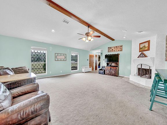Just a short 5-mile drive from town, this brick home on 1.5 acres features an in-ground pool and peaceful surroundings. The cozy 3-bedroom, 2-bath layout offers comfort and quiet, nestled among well-kept homes on multiple-acre lots. Vaulted ceilings in the open-concept living, kitchen, and dining areas create a bright, airy feel, while an exposed beam and wood-burning fireplace with gas hookup add charm. Outside, enjoy a sparkling pool, a covered back patio with an outdoor kitchen, and mature shade trees for privacy and relaxation. Updates include an aerobic septic system, a new well pump and tank, a new AC unit, fresh kitchen and bathroom flooring, new toilets, a new kitchen door, and a stunning primary bathroom with a rock shower, rainfall head, and heated floors. The pool pump, liner, and fencing have also been recently replaced. The adjoining 3.5 acres are available too—make this charming homestead with a pool and no HOA, your private retreat on 5 acres.