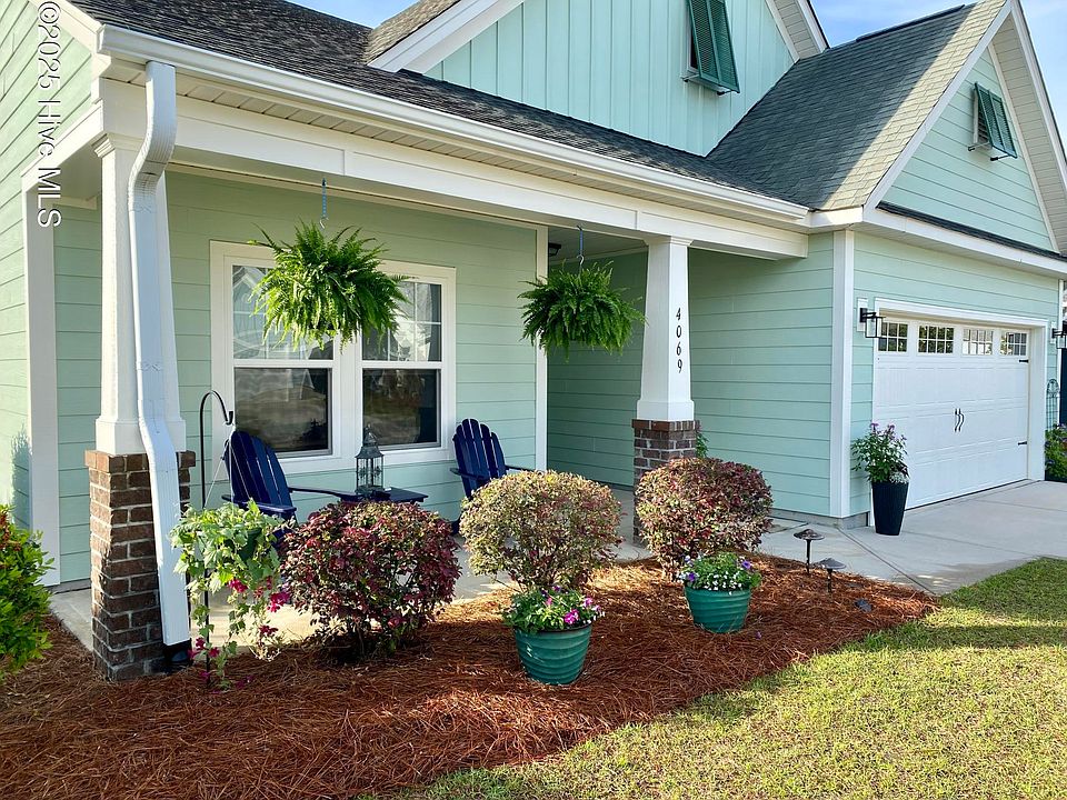 Beautifully maintained home in Parkway Crossing of Brunswick Forest near the Boardwalk Nature Trail featuring 3 bedrooms, 2 full bathrooms, a screened-in porch, and inviting outdoor spaces. The open-concept living area includes a coffered ceiling, natural gas fireplace, and a 4-panel glass door leading to the expanded screened-in porch with EZE Breeze windows and dual ceiling fans. The completely renovated custom kitchen is a chef's dream with white cabinetry, large island, pendant lighting, granite countertops, tile backsplash, new stainless steel appliances, gas stove, walk-in pantry, and butler's pantry. The primary suite offers a trey ceiling, sitting area or office nook, and an en-suite bath with dual vanities, granite counters, private water closet, and walk-in tiled shower with frameless glass door. Additional features include a fenced yard with luxurious landscaping, a whole-house water filtration and reverse osmosis system, wood-look laminate flooring in main living areas, pre-wiring for a security system, rocking chair front porch, private back patio, and natural gas service powering the Rinnai tankless water heater, fireplace, range, and heating system. HOA includes lawn maintenance and access to Brunswick Forest amenities—three outdoor pools, indoor pool, hot tub, Fitness & Wellness Center, tennis, basketball, pickleball, Hammock Lake, parks, trails, dog park, kayak launch, and playground—just minutes to shopping, dining, downtown Wilmington, and area beaches.