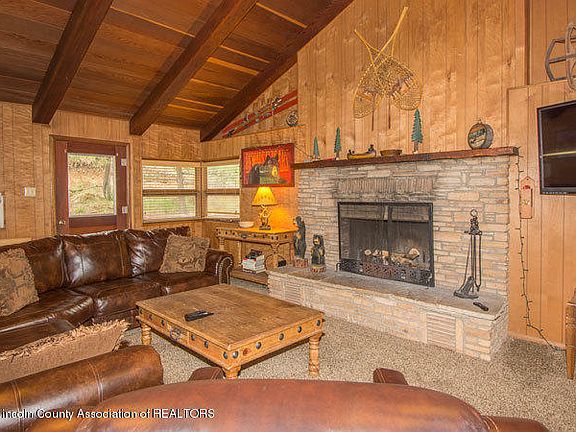Great rental cabin or family home located near the Upper Canyon. Open concept with vaulted wood ceilings on upper level. Covered deck on front with additional access from bedroom. New deck on back of cabin with Hot Tub. Lower level was built out with a 4th bedroom, additional bathroom with shower and washer/dryer and additional game and living area. Great location with Excellent rental history
