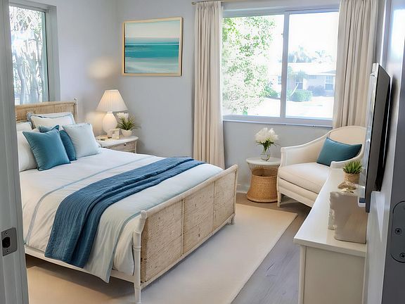 NEW EVERYTHING!!! Live in one of the best locations in NPB with totally fresh WINDOWS, DOORS, ROOF, A/C, FLOORING, KITCHEN, BATHROOMS, POOL SURFACE, POOL EQUIPMENT! This house will blow you away. Entertaining is a breeze in the home's open layout. For seamless indoor/outdoor living, there are accordion sliding glass doors. Each bedroom is generously sized and has its own dedicated bathroom, offering privacy and convenience. Come see this beauty!Some photos have been virtually staged. Would make an amazing low maintenance rental. No restrictions.