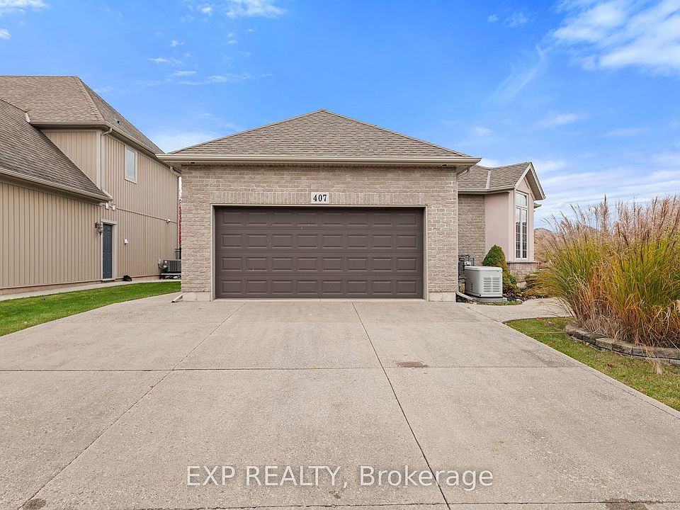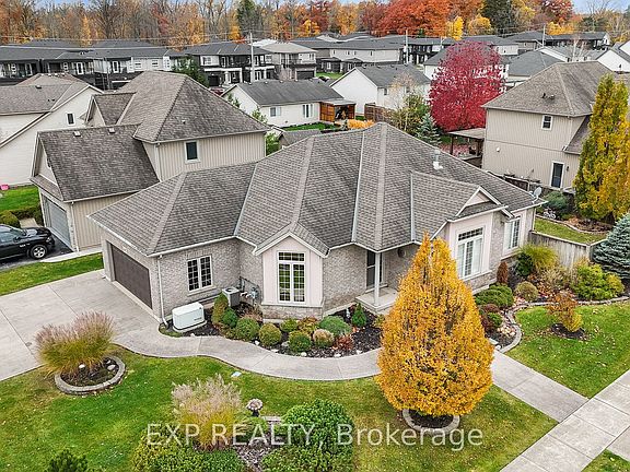 Welcome to 407 Barrington Court, a beautifully maintained bungalow offering over 2,600sqft of refined living space in one of Ridgeway's most desirable neighbourhoods. Perfectly positioned on a premium corner lot, this elegant residence blends timeless design with everyday functionality, all within a short drive to the boutiques, cafés and restaurants that downtown Ridgeway has to offer. The main floor welcomes you with soaring ceilings, abundant natural light, custom california shutters and an open-concept layout ideal for both relaxing and entertaining. A striking floor-to-ceiling tiled gas fireplace anchors the spacious living room, creating a sophisticated focal point that complements the home's modern design. The gourmet kitchen is a chef's delight, featuring high-end stainless-steel appliances, rich cabinetry and a generous island perfect for casual dining or hosting family gatherings. Three main-level bedrooms include a primary suite offering ample closet space and a beautifully appointed ensuite bath. Downstairs, the partially finished basement expands your living potential with a cozy rec room complete with a second gas fireplace, fourth bedroom, full bathroom and a massive unfinished area, providing an ideal blank canvas for a home gym, hobby studio or workshop. Outside, the fully fenced backyard is a private retreat featuring exposed aggregate concrete pathways and patio, lush landscaping and an irrigation system that keeps everything looking pristine. A double attached garage and wide concrete driveway add both convenience and curb appeal. This exceptional property delivers the perfect balance of low-maintenance living and luxury finishes in a quiet, walkable neighbourhood just a short distance from Lake Erie, parks, friendship trail, amenities and Ridgeway's vibrant main street. If you've been waiting for the right downsize opportunity that doesn't compromise on elegance or space, this is it! Book your showing today!