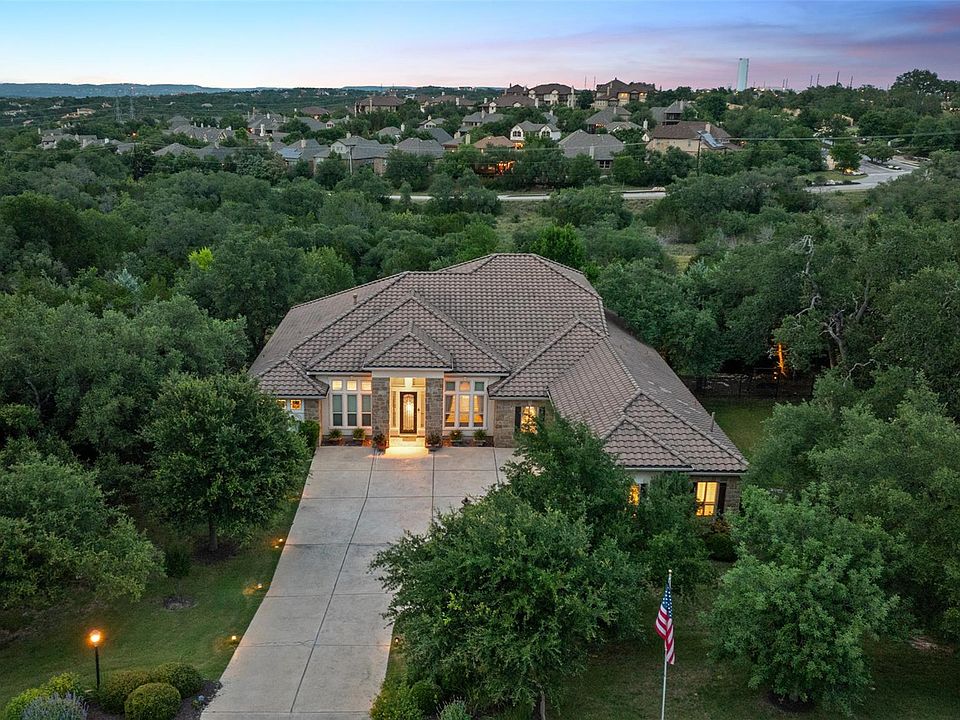 Gated communityProfessionally landscaped groundsHigh-end finishesRich wood flooringMultiple outdoor living spacesCozy family roomLarge slate-tile terrace