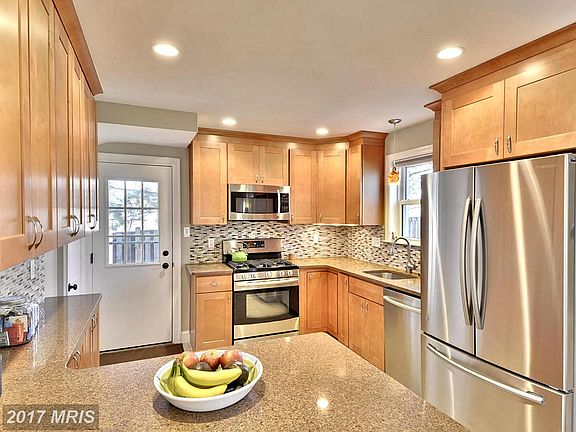 Renovated from top to bottom in 2014, with additional improvements in 2015 and 2016. Brick colonial in Indian Spring neighborhood of Silver Spring with original charm but modern renovations. Original hardwoods throughout, new crown moulding in living room. Kitchen peninsula opens to dining room. Soft-closing maple cabinets, SS appliances, quartz countertops, glass tile backsplash and tile floor. Bonus sunroom on main level with entries from both dining and living rooms is a great space for t.v. watching, library, or office, and includes a brand new half-bath and storage closet. Three bedrooms upstairs, lots of great natural light, and renovated full bathroom. Basement newly-finished – great for family room, and includes self-contained laundry room with high-efficiency washer and dryer and laundry sink, storage spaces, and newly-tiled bathroom with large shower. Attic is unfinished but beam height and size of space provide great potential for master suite or bonus room(s). To increase energy efficiency, attic fan and new insulation were installed late 2014. Great backyard, newly-landscaped 2015 with large Techoblock paver patio, slate stoop from kitchen door onto patio, and multiple low-maintenance, high-impact plantings/beds and trees. Six-foot cedar Wyngate privacy fence installed 2014. One-car garage and driveway allow for off-street parking as well as storage. Systems in great shape -- new hot water heater and AC compressor in 2016, furnace new in 2011. Great commuting access (bus to Silver Spring Transit Center/Metro is a three-minute walk; Metro just over a mile away), plus an easy walk (or run) to Sligo Creek Trail (.4 mile) and the Silver Spring YMCA (a few blocks away).