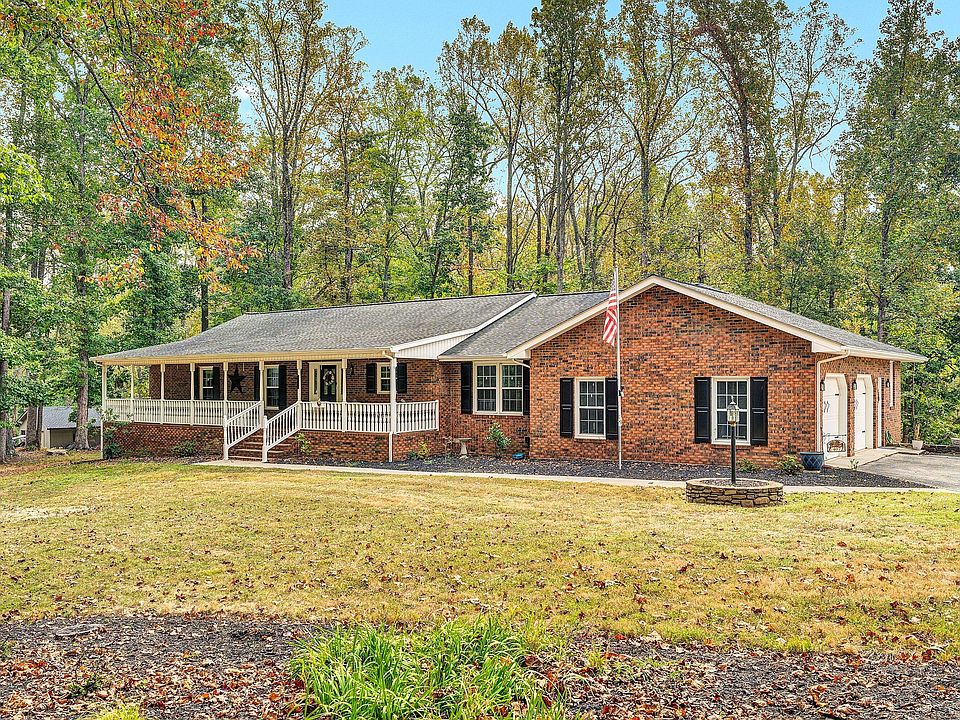 This spacious 4-bedroom, 3.5-bath all-brick ranch is a rare gem in the desirable Brookledge community of Bedford County. A peaceful and serene location that offers comfort, flexibility, & mountain views. Inside, you'll find a stunning great room with vaulted ceilings, wood floors, & French doors that flood the space with natural light. The renovated kitchen features lots of counters, new appliances, & flows easily into the dining area. Storage is abundant, with walk-in closets & a smart layout throughout. A unique highlight is the lower-level guest suite, with its own bath & private exterior entrance--ideal for an office, studio, or retreat. Enjoy the outdoors from the rocking chair front porch, screened-in porch, open-air deck, or patio. The 2-acre lot offers ample garden space & peaceful surroundings. An oversized 2-car attached garage flows into a generously sized laundry and pantry, keeping daily life tidy and effortless. An unfinished basement section provides abundant storage, room to expand your living area, and a workshop with its own door for easy driveway access. This home combines classic charm with modern comforts. Schedule your tour today & explore its full potential!