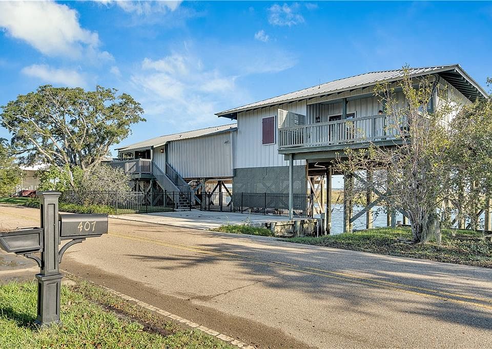 HUGE PRICE Improvement !! This expansive waterfront property, set on two generous lots, offers a spectacular 100' x 200' lakeside lot (READY FOR A NEW BUILD). With 2,393 sq ft of living space, this home includes an open living and kitchen concept featuring granite counters, a large island, and added recess lights. Large windows for added natural light (windows were replaced in 2021). The 1,000 sq ft primary suite includes a vaulted ceiling, stunning copper tub, wet bar, and an oversized walk-in shower. The office space can easily be converted into a third bedroom to suit your needs. For added convenience and functionality, the home includes a boat hoist with a lift.1153 sqft boat deck for entertaining . The lakeside lot also includes a two-car garage for added storage and functionality, as well as an 8' x 8' pump house, housing the well water system. Storage room under home is 30x12. Hot water on demand in primary with mini split ac. Pilings and bulkhead recently wrapped . New concrete bulkhead by Sandy beach.Pear ,fig and ice cream banana trees . Electric and deck ready for hot tub (lakeside lot ) WHOLE HOUSE GENERATOR. Priced significantly under appraised value.