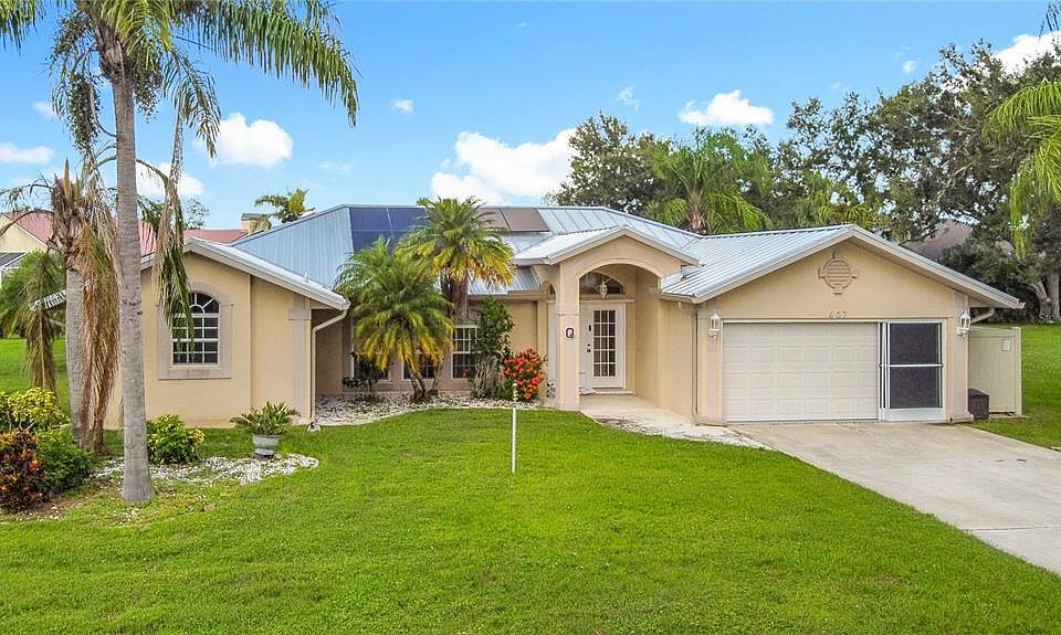 Beautiful split floor plan pool home located in a quaint section of the desirable Deep Creek community in Punta Gorda, Florida. City water and sewer home is move-in ready, with recent upgrades, including a new metal roof and extensive roof solar panel system to make your own electricity. Home features 3 bedrooms and 2 bathrooms with a full- size kitchen, living room overlooking the pool, and a bonus family room. An oversize lanai and pool deck welcomes you to take a dip or relax in the connected jacuzzi with waterfall. All bedrooms have walk-in closets and the master suite features roomy his and hers closets, his and hers sinks and vanities in the master bath, which also offers a tiled walk-in shower and oversize tub. Spacious laundry room, multiple sky lights, and a screened-in 2 car garage with side door access add convenience to the good life. Solar panels installed in 2025 are brand new, come with a fully-warranted and assumable installment contract, and can save hundreds per month in utility costs. All the work is done and ready for someone to make this gem their own. Motivated seller. Make an appointment today. HOME IS OWNED BY THE ESTATE OF ANDREW R. HALCIK WHICH IS PENDING IN THE CIRCUIT COURT OF CHARLOTTE COUNTY. SELLER IS THE PERSONAL REPRESENTATIVE OF THE ESTATE AND WILL OBTAIN AN ORDER APPROVING SALE IF REQUIRED BY TITLE AGENCY. SELLER CAN MAKE NO REPRESENTATIONS ABOUT THE PROPERTY. BUYER SHOULD PERFORM ANY INSPECTIONS DESIRED.