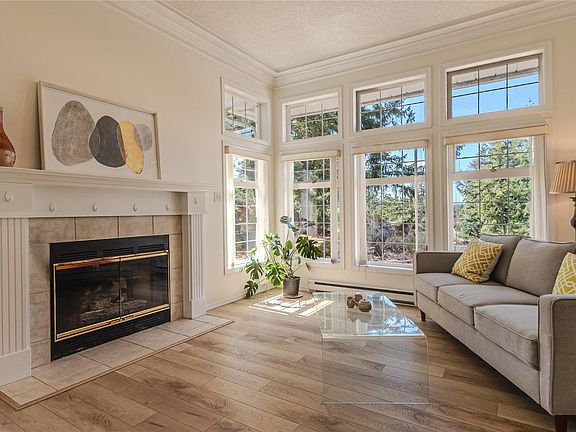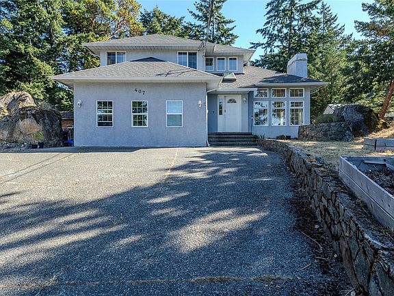 Solid family home Sitting high on a sunny lot in wooded Thetis Heights. A 0.47 acre lot featuring lots of stonework, privacy and views. A custom-built home with top end features, from a beautiful staircase in the grand entrance to the luxury living room with tall windows topped with transom windows that flood the house with light, to the millwork mantel over gas FP & handsome crown moulding on high ceilings which carry thru to the formal dining that opens to a big deck. The kitchen offers lots of cabinetry, bay window breakfast nook & open access to the large family room with brick woodburning FP & sliders to the other end of the deck. Up are 3 family bedrooms, master with large custom ensuite & walk in closet. Plus spacious main bath & a landing with tree top views. Hardwood and new vinyl flooring throughout. New Large deck for entertaining. Modern one bedroom suite has its own entrance and patio area. Quite & close to schools, shopping & fabulous hiking trails.