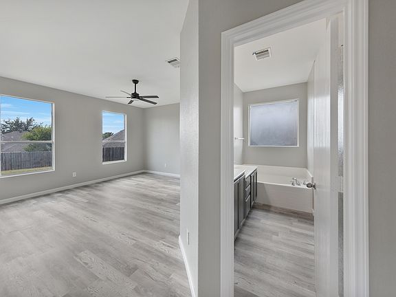 Experience upscale living in a tranquil cul-de-sac at Carter Ranch. This elegantly renovated home features a generous backyard, perfect for hosting gatherings with friends and family. Offering 4 bedrooms and 3 full baths, including a master suite on the main floor, this home provides ample space for all. Every aspect has been meticulously upgraded, with new flooring, paint, trim, cabinetry, granite countertops, and fixtures throughout. The spacious layout is ideal for larger families to enjoy. Carter Ranch residents can enjoy community amenities including a nearby elementary school, a full-sized pool, a playground, and a 10-acre lake with a fishing pier. Scenic walking trails and an amenity center add to the charm. With shopping, sports facilities, and major highways just minutes away, convenience is unmatched.