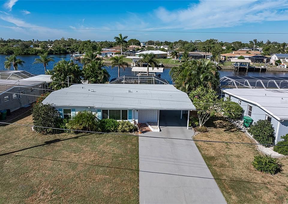 WATERFRONT HOME IN PORT CHARLOTTE W/NEW ROOF, NEW A/C, & HEATED SALTWATER POOL - Fully furnished and move-in ready, this 3 bed/2 bath waterfront home captures the essence of Florida living with intersecting canal views, colorful sunsets, direct boating access to Charlotte Harbor, and lush, tropical landscaping that creates the feeling of a private oasis. Whether seeking a full-time residence, seasonal getaway, or income-producing property, this turnkey home offers flexibility and a waterfront lifestyle at an affordable price. THIS IS YOUR OPPORTUNITY TO OWN ON THE WATER!! Inside, the open floor plan blends living, dining, and kitchen spaces, all oriented toward the wonderful pool and canal views beyond. The kitchen showcases Corian counters, a beach-inspired mosaic tile backsplash, stainless steel appliances, a new microwave, and a brand-new range with convection and air-fry capability—perfect for effortless entertaining. The Florida room extends the living space with even more waterfront views. Master suite features a large walk-in closet and en-suite bath. Two guest rooms share a guest bath. The screened lanai extends the living area outdoors. Lanai surrounds a heated saltwater pool with a new salt generator and new pool pump motor. For boaters, a 10,000-lb lift with a new canopy cover, 10x15 wooden dock, and 75 ft of seawall provide everything needed to live your Florida dream. Water & electric hook-ups are available dockside. Set off on your latest adventure from your own backyard. Well-maintained, tropical landscaping with multiple species of palm trees surrounds the property including shade and privacy-producing areca palms along the side. The home has a large carport. A dedicated laundry area off the carport includes a washer, new dryer, utility sink, and storage. A separate storage room and workshop provide ample space for tools, hobbies, or gear. Other updates include NEW A/C system (2024), NEW roof (2025), & NEW PGT impact-resistant windows (2023). Situated in a quiet, non-deed restricted neighborhood, the home is just minutes from shopping, dining, and medical facilities—with easy access to Sunseeker Resort, Fishermen’s Village, and nearby beaches. Quick connections to US 41 and I-75 put Fort Myers, Sarasota, and beyond within easy reach as well. Turn the key, settle in, and start living the Florida dream from this beautiful waterfront property—where every day begins on the water and every evening ends with a sunset.
