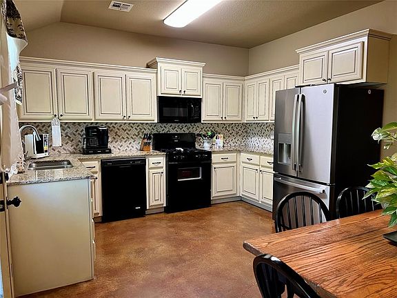 Lovely, MOVE-IN Ready home on a nice corner lot with 10X24 FT STORAGE BUILDING with ELECTRIC, GAS & SHELVING! WONDERFUL kitchen has GRANITE countertops, GAS oven/stove, modern TILE backsplash, and CUSTOM kitchen cabinets. Enjoy the MASTER SUITE with private bath and nice walk-in closet. Secondary bedrooms also have nice-sized closets. 3 BEDROOMS, 2 Baths (with GRANITE countertops) and OVERSIZED 1 car garage! Very little carpet... most of home has STAINED Concrete and VINYL (wood-look) flooring for easy cleaning! Added concrete driveway, slab for storage building and sidewalk all the way around the house! Property backs to 2 VACANT LOTS, which makes for a nice view and a PRIVATE feel! PUT THIS HOME ON YOUR LIST TO SEE TODAY!!!