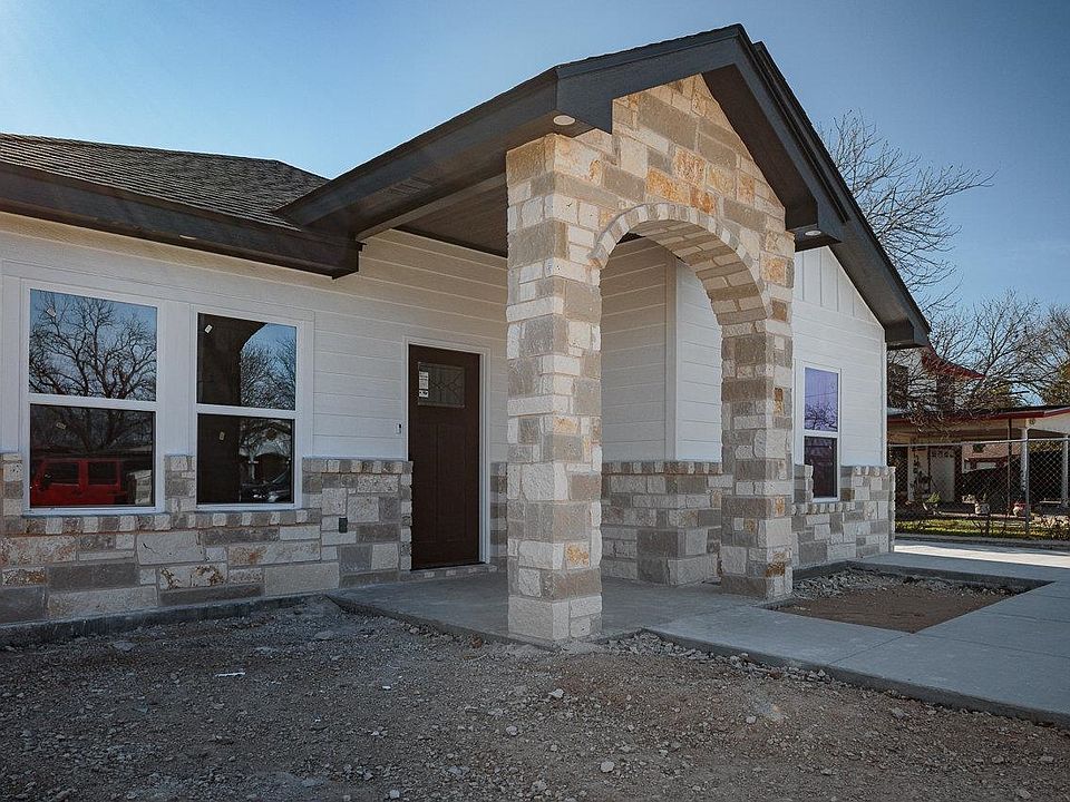 Welcome to your breathtaking new home! Entertain with ease in the open-concept living area, where the kitchen seamlessly flows into the dining and living spaces. Boasting all stainless steel appliances, the kitchen is both stylish and functional. With a split floor plan offering privacy and functionality. The master bedroom is a spacious and inviting retreat, while two additional bedrooms offer ample space for family or guests. A second full bathroom and convenient powder room ensure everyone's comfort and convenience. Inside, you'll find ceramic floor tile, granite countertops and beautiful light fixtures. The large carport doubles as a versatile patio space, ideal for hosting gatherings. The stucco and stone exterior adds to the farmhouse's timeless appeal. While the spacious outdoor yard offers ample room for your own personal touch and landscaping.