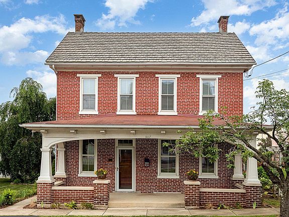Welcome to a piece of Hershey’s history! This charming brick residence, built before 1870, is rich with period craftsmanship and timeless appeal. Located in the heart of Derry Township, this 3-bedroom, 1-bath home offers a rare opportunity to own a preserved piece of local heritage. Inside, you’ll find original custom hardware, solid brick walls, and distinctive period details throughout. A later addition includes a sunroom that brings in extra living space and natural light. The home features a traditional layout with flexible rooms that invite creativity and customization. At the rear of the home sits the historically designated “summer kitchen,” where meals were once prepared during warmer months to keep the main house cool. It features a unique walk-in fireplace and offers versatile potential to suit modern-day needs—whether as a studio, office, or additional living area. Outside, you’ll enjoy a deep backyard and a large, detached garage with space for four vehicles, a car lift, and generous storage. Set in a neighborhood steeped in tradition, this property was honored with the 2006 Preservation Award from the Hershey-Derry Township Historical Society and remains a beloved local landmark. Conveniently located just 0.7 miles from the Hershey Country Club, 1 mile from downtown Hershey, 1.8 miles from Hersheypark, and 3 miles from the Penn State Health Milton S. Hershey Medical Center, this home offers both historical charm and proximity to local amenities. This is your chance to breathe new life into a home full of character, history, and endless potential.