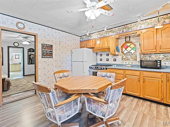 An eclectic gem in an established part of Festus, the 3 bedroom home has had a lot of updates over it's lifetime. It has a 2-year old roof and lots of fresh paint. If you like a colorful yard, pictures from this past summer's blooms are included. There are also 1 fully updated bathroom and 2 half-baths, an updated kitchen and you'll love the luxury of the "tub room". If someone likes to soak, this is a must see. You'll enter through the sunroom, where plants will welcome you. Up the steps you'll pass a bedroom and bathroom as you proceed into the eat-in kitchen. Check out the dual-fuel range. The living room will be to your left and the first of the bedrooms is next (currently used as an office) with it's own 1/2 bathroom. Back down the hall and to the right is the "tub room" where you can wash yourself and your clothes before proceeding into the primary bedroom with it's walk-in closet. The finished basement space has a workshop area and it's own 1/2 bath. This home offers so much, you won't want to miss out on this one. The major kitchen appliances will be staying including that amazing dual-fuel range. The refrigerator in the office room will also be staying.