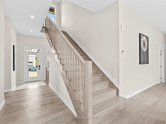 PREPARE TO FALL IN LOVE! This pristine 4 bedroom, 5 bathroom BRAND NEW Caivan home in Barrhaven offers over 3,700 sqft of beautifully upgraded living space. Massive 50' CORNER LOT facing the Jock River on a quiet street! Situated in one of Ottawa's fastest-growing communities, you'll enjoy nearby schools, parks, shopping, and easy access to transit. The main level features 10-foot ceilings, engineered hardwood throughout, a private office, formal dining room, and an open-concept living with a modern Napoleon fireplace. The chefs kitchen is the true centrepiece; complete with a quartz waterfall island, upgraded backsplash, custom Laurysen kitchen cabinetry with pullouts, LED lighting, upgraded integrated hood fan, and a microwave drawer. A mudroom with walk-in closet and additional storage adds everyday convenience. Upstairs, there is hardwood flooring throughout with 9' ceilings! The spacious primary suite includes a massive walk-in closet and a spa-inspired ensuite with double sinks, a freestanding tub, and glass-enclosed marble shower. Two bedrooms share a full bath, while the fourth has its own 3-piece ensuite and walk-in closet. This level also offers laundry, linen storage, and a private Romeo & Juliet balcony. The builder-finished lower level expands your living space with a large rec room, family/entertainment area, another full bath, and dedicated storage. 4 parking spaces included in the rental price. Tenant to pay all utilities (water, hydro, gas, hot water heater). Tenant responsible for lawn maintenance & snow removal.