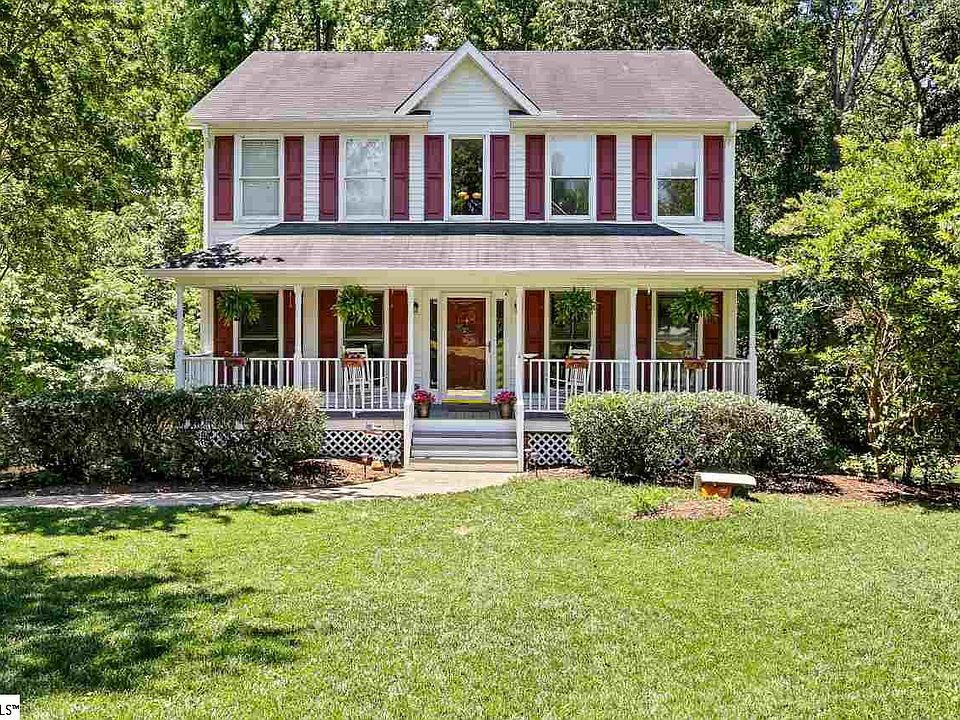 Cute as a button home with rocking chair front porch located in the heart of Simpsonville! Take your pick of FOUR outdoor decking/porch areas to enjoy the gorgeous natural outdoor beauty this home and lot has to offer. I am sure one of your FAVORITE places will be the main level screened porch. The current owners also love the low maintenance backyard and that you can genuinely enjoy the natural beauty of the trees and nature right from the deck. 407 Foxhound Road in Simpsonville features 3 bedrooms and 2.5 baths. All the home's bedrooms are situated on the second story. The master bedroom suite feels spacious and it includes a full bathroom with dual vanities, jetted soaking tub, separate shower, walk-in closet, and water closet. The main floor of this home has an updated kitchen with fresh feeling white cabinetry, updated stainless steel appliances throughout, and natural granite countertops. The kitchen opens to a bright and cheery breakfast area and super cozy feeling living room with gas fireplace. The entire main floor has updated hard surface flooring installed and is painted in neutral trending paint colors. The BONUS of this home is the completely finished basement level. There are two additional flex rooms and a two-car garage at the basement level. The possibilities for the use of the basement flex rooms are limitless. Currently the owners are using them as an exercise and recreation room.