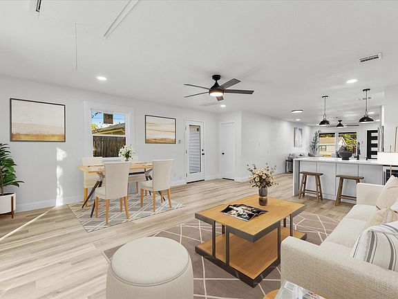 Modern Farmhouse Charm, Fully Remodeled, New Roof & HVAC. Step into this beautifully renovated 3 bedroom, 2 bath modern farmhouse that perfectly blends timeless style with fresh, modern comfort. Priced at $339,000, this home is completely move in ready, offering a brand new roof, recently updated HVAC system, new windows and a full interior remodel that leaves nothing to do but unpack and enjoy. The open concept layout filled with natural light, creating a warm and inviting flow from living to dining to kitchen. The designer inspired kitchen features new custom cabinetry, stainless steel appliances, quartz countertops, and a large island, perfect for entertaining or everyday living. The primary suite offers a peaceful retreat with a beautifully updated bath, while two additional bedrooms provide plenty of space for family, guests, or a home office. Both bathrooms feature modern fixtures and finishes with a clean, farmhouse aesthetic.