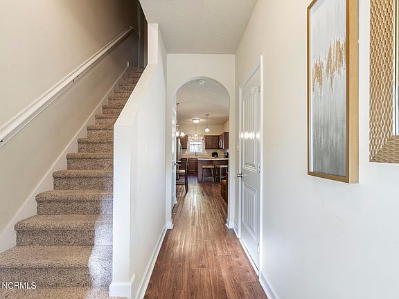 Situated nearby Camp Lejeune, MCAS New River, the Beach and many options for shopping and dining, this airy coastal home offers a relaxing lifestyle. With this completely turnkey home, you have an open floor plan, 3 large bedrooms, 2.5 bathrooms, and an upstairs laundry room. A sophisticated kitchen area serves as the hub of the home. Open to a large family room, the kitchen features stainless appliances with a large peninsula island offering additional dining space; the open dining area connects to a private patio, perfect for grilling with friends or just relaxing outside. The upstairs master suite has a large walk-in closet and a spacious bathroom with dual vanities. Other highlights include beautiful, low-maintenance flooring and carpet throughout, a covered back porch, fenced in yard, and an attached single car garage with epoxy floor. It's desirable cul-de-sac location provides additional privacy, and this home comes with a 2-10 Home Warranty for added piece of mind. Don't wait to schedule your showing to see this wonderful home!