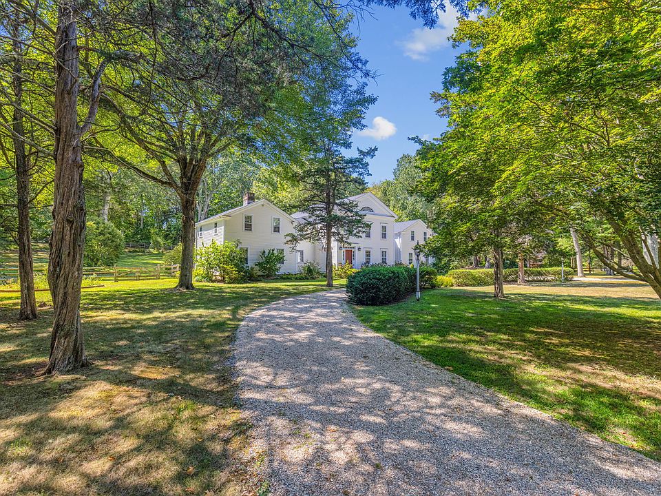 The Scranton House. This Quintessential New England historic Greek Revival blends old world charm with modern luxury living! Built by a prominent Connecticut businessman and government leader, was constructed circa 1830 and first stood on the grounds of the Madison memorial library and was moved to its current location in 1988. Nestled on two immaculately manicured park-like acres and backing up to the country club of Clinton, this home is truly unique. Beautiful exposed beams are prominent throughout as well as the wide-plank white pine and maple floors. The main level features an oversized country kitchen with stone countertops, hearth room with granite fireplace, large formal dining room, expansive family room with French doors and a home office that completes the space. Ascend to the second floor via one of two staircases to find a stunning primary bedroom suite with fireplace, walk-in closets, mosaic-tile shower and dressing area. Three additional bedrooms plus large rec room with wet bar, could be serve as a potential in-law suite! Plentiful storage is evident by a large walk-up attic and basement which feature 9-foot ceilings and direct access to the oversized garage. A new architectural roof was installed Spring of 2025. Conveniently located to popular local attractions such as Town's Beach, West Beach, Pilot's Point Marina, Bill's Seafood, Menuketesuck River and McKinney Wildlife Refuge. This breathtaking one-of-a-kind home is not to be missed!