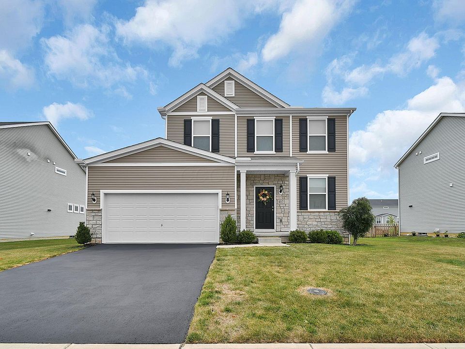 Welcome to this stunning 3 Bedroom & 2 1/2 Bath home that offers comfort, functionality & style-9 ft. ceilings on 1st Floor w/open floor plan & lots of natural light-Large Family Room that is adjacent to Dining Area & Kitchen-Fabulous Kitchen w/granite countertop, tile backsplash & Island-the Flex Room is currently being used as a Dining Area but could be a Florida Room & has abundant windows-another flex room is currently being used as a Living Room but could be a home office, play area or library-Upstairs is a spacious Owners Suite w/walk-in closet & Owners Bath has soaking tub, shower & dual sink vanity-2 additional nicely sized Bedrooms share a full bath-2nd Floor Laundry & washer & dryer to remain-Full Basement w/high ceilings, an egress window & is plumbed for full Bath & is ready to be finished for extra living space or storage-Lots of upgrades throughout-Step outside to the beautiful backyard w/an awesome paver patio-Subdivision features include bike/walking path & park.